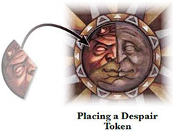 Despair tokens represent Dracula's creeping influence over the unsuspecting citizens. These tokens have an effect over how much the influence track is advanced when hunters are defeated. Additionally, Dracula's "The Fury of Dracula" ability on his character sheet triggers after all three despair tokens are placed on the board.