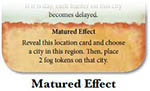 The bottom of some encounter cards have a red section that has a "Matured Effect". If a hideout is removed from the trail during the Dracula phase, Dracula may mature any of the encounter cards in that hideout by resolving the text in the "Matured Effect" section on those cards.