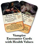 Each vampire has a health value printed on its card. When a vampire suffers damage, players follow the same rules used when either a hunter or Dracula suffers damage, placing damage tokens on the vampire encounter card instead of a character sheet.