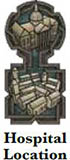 Hospitals: Hospitals are spaces on the board attached to cities. There are hospitals in Madrid, Rome, and Budapest. When a hunter is defeated, he is placed at the nearest hospital (measured by roads) at dawn. If there are two equidistant hospitals, Dracula chooses which of those hospitals the hunter is placed at. The hunter figure is placed on the top portion of the hospital location.
