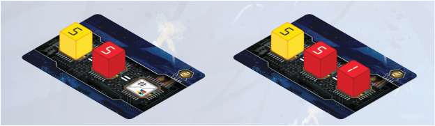 Example: This card shows that you can either match the number on the die OR the color of the die.