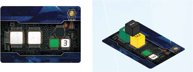 That could be either the card itself (it is one of the lowest level dice), or there are 2 dice under it. In the following example, the Green or the 3 could be placed first, and the Black die must be placed last.