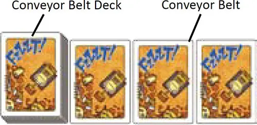 The Chief Mechanic lays out eight cards from the Conveyor Belt Deck face down in a single line away from the Deck to form the Conveyor Belt.