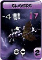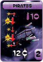 In the full game, you will also encounter Pirates and Slavers. When you defeat them you don't gain goods; you gain cold, hard cosmic credits. Move your ship back the indicated number of empty spaces and take the credits from the bank.