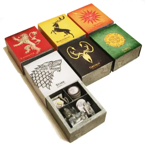 During the time of A Song of Ice and Fire in which A Game of Thrones: The Board Game is set, the following Houses are the principal players in the struggle for the Iron Throne.