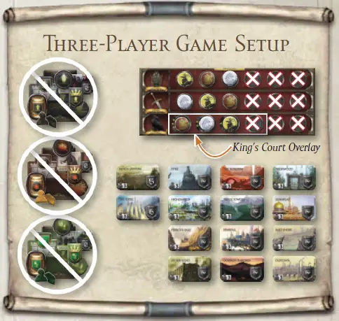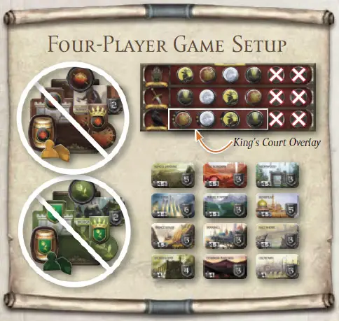 Then place the King's Court Overlay on top of the King's Court Influence track, covering the first four positions.