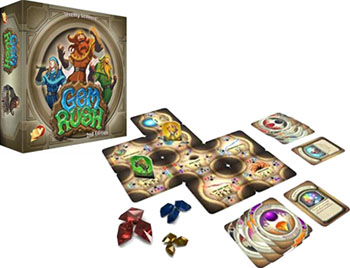 In Gem Rush, players take control of dwarves building a magical gem mine. The rooms in the mine are used to obtain gems, and then those gems are used to construct new rooms and score points.