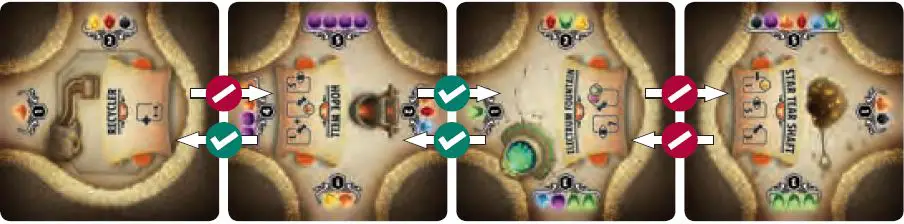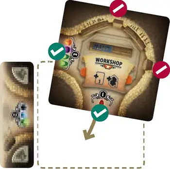 The player must place the new " room so that one of its doors faces the room that was just exited. In this case, either edge with a green check mark can face the room being moved from.