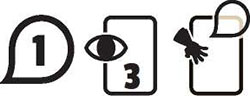 In this set of three symbols, the player would Name a gem, Reveal 3 Gem cards from the top of the Gem deck, and Keep any that had a gem on them that matched the Named gem (discarding those that did not match the Named gem).