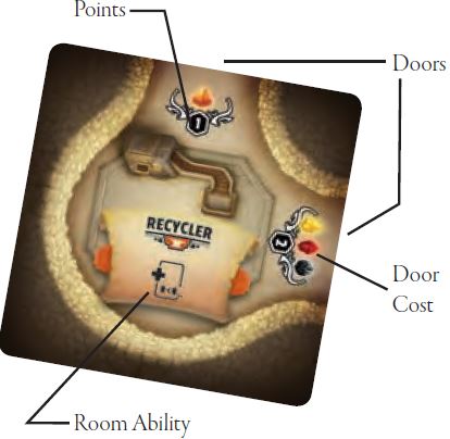 Each room has an ability that can be used during a player's action phase (usually to gain Gem cards).