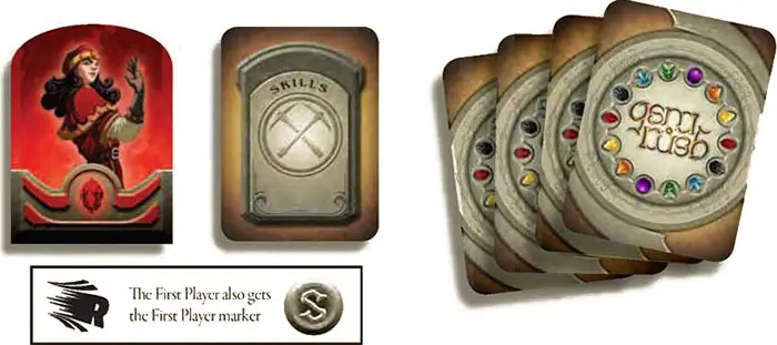 Shuffle the Gem cards and deal 4 to each player to form their initial hand. The remaining cards form the Gem deck. Leave room beside the Gem deck for a discard pile.
