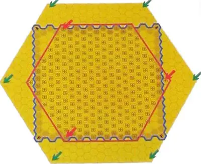 Each player takes all hexagonal blocks of 2 colors, and plays within the blue lines as shown in Figure 1.