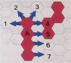 The first hexagonal block must be on the starting point. Refer to Figure 1 for the starting points for 2-, 3-, 4-, and 6-player game; and Figure 2 for starting points for 5-player game.