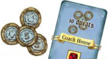 When the owner of a Message card delivers it, he receives 30 ducats from the bank. To deliver the message, the tower must have visited both buildings indicated on the Message card during the same turn.