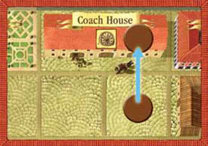 The merchant chooses to put one Ownership marker on the Guild Hall and another one on the Coach House; he is now the owner of these two buildings. He must then remove the disc from the chosen street space.