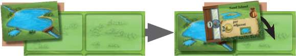 Example: If you are the only player to play the Cultivator, you may first gain a new Pond tile and place it on an empty space next to another empty space of your Landscape board. If you then build the Sand island on that other space, you will gain 2 Quartz sand.