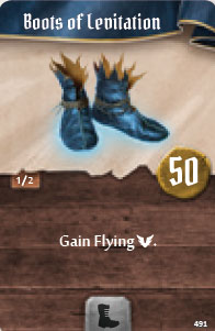 Whenever a "Random Item Design" is listed as the reward when looting a treasure tile, the looting player should draw a card from the random item design deck. These cards look very similar to normal item cards, but have a blue back, shown at the right.