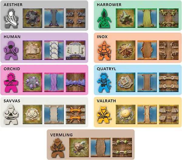 hof the basic resource depicted on the race's mati - Three bridge/gate tiles of the race's color, placed on the right side of the race's mat.
