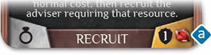 listed in the lower right of the card (either 1, or 3). When any adviser is recruited, the recruiting player earns one lasting influence plus any depicted number of points a.