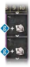Moreover, every time a resource is used, it earns points for the player who owns the tile. The amount earned is written on the building tile using the resource c.