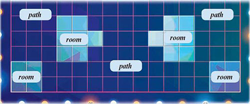 The players aim is to place their light chips inside the rooms on the gameboard. At the end of the game, all rooms will be evaluated, and victory points are awarded to the players owning the highest total of pips in each room.