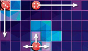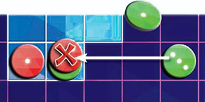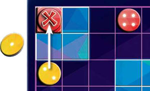 If the player's own chip or another player's chip is on a square between the starting chip and the destination square, the player cannot place that chip. The way is blocked.