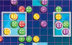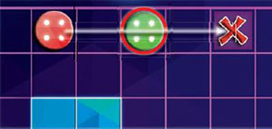 If the destination square is occupied by a single chip belonging to any player (including the player themself), the player may place their new chip on top of that chip. Only the chip on top is taken into account for the remainder of the game.