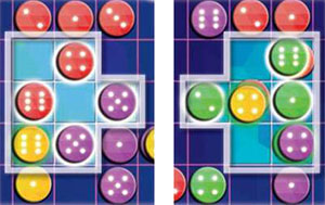 Starting from one of their own chips on the board (the starting chip), the player counts as many squares in a straight line as the number of pips on that chip.