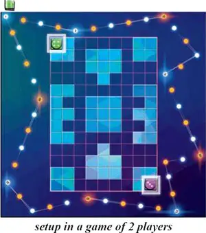 Next, each player randomly draws one chip from their bag, chooses one of the sides, and places it on their start marker.