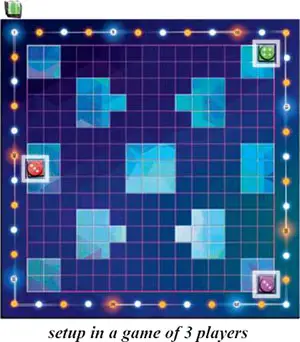 Unfold the game board in the center of the playing area, with the correct side up, according to the number of players.