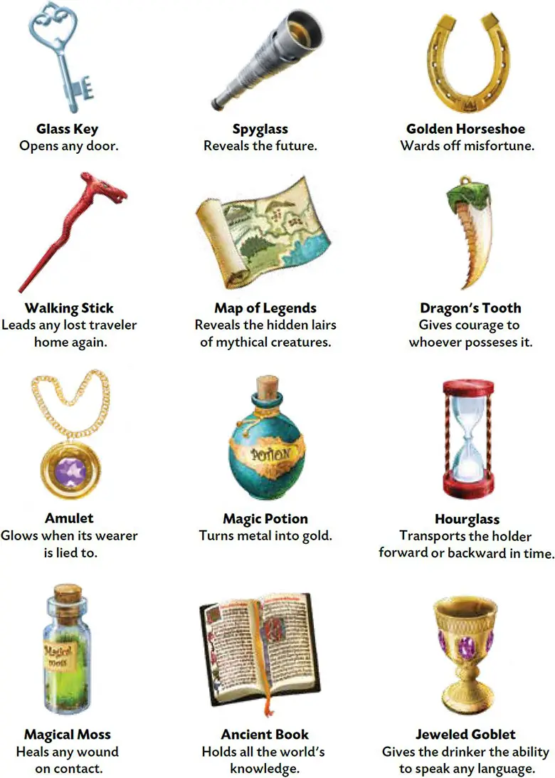 Queen Benevolence is hosting a celebration to honor her loyal subjects. To thank them, she will give away 12 extraordinary items from her treasure box that she keeps hidden away in a secret chamber in the castle.