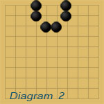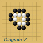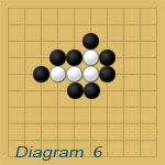 Zie diagram 6, er is nog één vrijheid over en zwart moet deze eerst vullen.