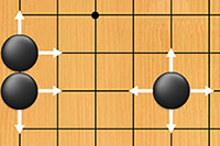 Wanneer een groep heeft slechts een vrijheid over heeft, ze ggen we dat de groep in atari mode is, hetgeen betekent dat de groep in de volgende beurt gevangen kan worden.