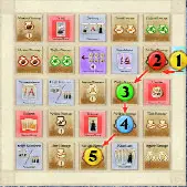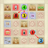 The players continue in this way, ending with the starting player placing his highest numbered auction marker adjacent to or diagonal to the last player's auction marker. Players may not place auction markers on top of auction markers. The auction markers form a increasing number trail (1-2-3-4-5 with 4 players, 1-2-3-4 with 3 players, and 1-2-3 with 2 players).