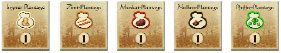 When a player chooses the progress action, he moves one success marker on his development board down one space to the row below. To do so, the player must spend spices and ships. The number of ships and number and kind of spice sacks required is shown in the area between the rows on the development board. In these areas are figures of 1, 2, 3, or 4 spice sacks. To move the success marker, the player must give up all the spice sacks shown.
