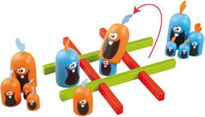 These cute characters are hungry for fun and other Gobblers. Test your memory and appetite for laughs with this easy to learn, quick game of strategy. Line up three of your Gobblers in a row to win!