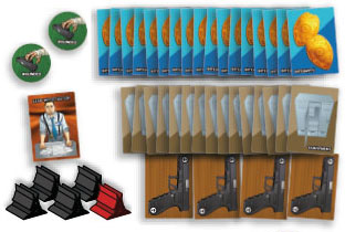 If you are the Agent or Kingpin, you are not eliminated the first time you are shot. Instead, you must take a Wounded token and draw one Equipment card. Once you have a Wounded token, you are eliminated if you are shot a second time or if you no longer hold the Agent or Kingpin card.