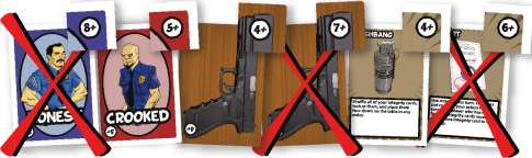 Each Gun, Integrity card, and Equipment card has a number in the corner to indicate whether it will be used during this game. Before playing, remove any Guns and cards that show a number in the top right corner that is greater than the number of players in the game.