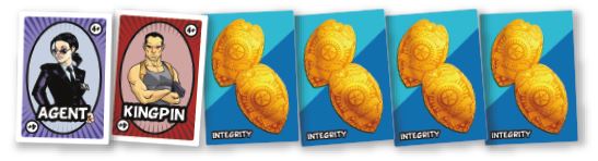 Remove the Agent and Kingpin cards from the Integrity deck and place them in a separate face-down pile. Shuffle the Integrity deck and add enough cards to the pile to deal one card to each player. Do not view these cards.