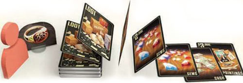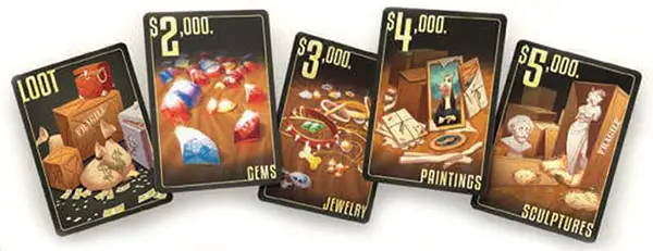 Give each player 4 Loot cards to start their Stash: one of each value ($2,000, $3,000, $4,000, and $5,000). The type of Loot does not matter (but might in future expansions), and should be chosen randomly.