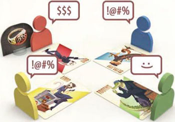 If this step is taking too long because players keep changing their minds, you can have everybody take turns, starting with the Boss and going clockwise, offering bribes and making threats. Afterwards, players can choose an Action card at the same time.