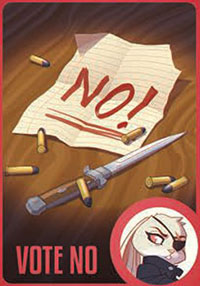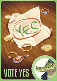 Vote Yes is a vote in favor of the current Boss and the Loot distribution they are proposing. If there are at least as many Vote Yes cards as Vote No cards, the vote passes (but see "Results of the Vote" on page 9 for more information).
