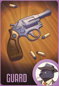 Guard is used by a player to protect themselves from being robbed. If a player plays this card, they reveal it any time another player reveals a Rob card, if the robber's Threat marker is in front of them.
