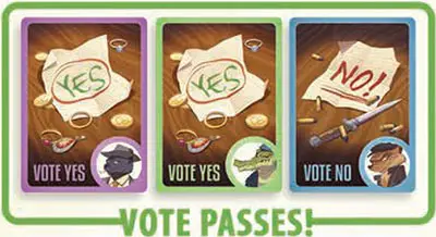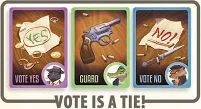 If there are exactly as many Vote Yes cards as Vote No cards (or if no Vote Yes or Vote No cards are played at all), the vote is a tie.