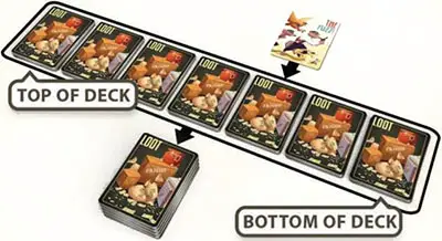 When you are finished, you will have a face-down Loot pile in the center of the table, with The Fuzz! card randomly placed in the lower half of the pile.