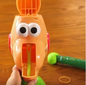 Open Gooey Louie's nose door and attach the looped gooey into the groove in the trigger.