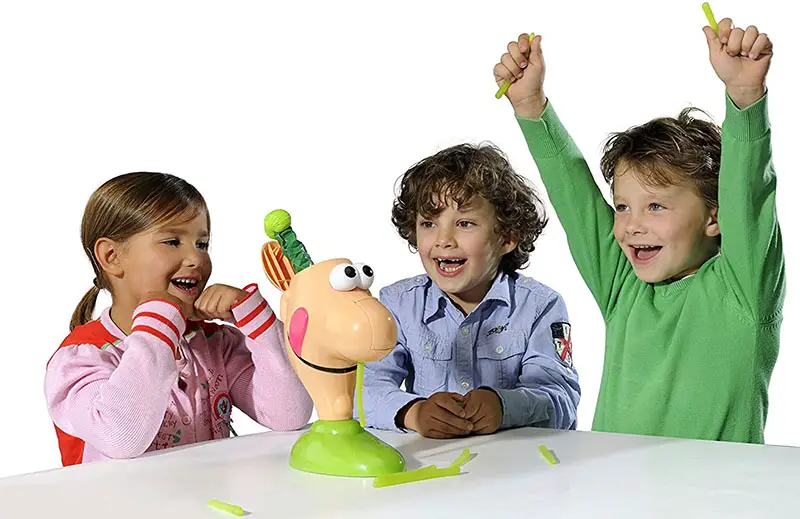 The youngest player starts the game by rolling the die to see how many gooeys to pick from Louie's nose.