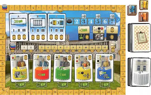 - Place the game board in the middle of the table. It features spaces for the Guest cards, the Emperor track, 3 spaces for the Emperor tiles, and 3 spaces for the Politics cards.