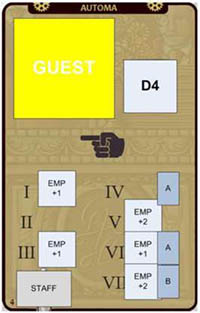 - If there are no guest and/or no dice corresponding to what indicated on the automa card, discard it and draw a new one;