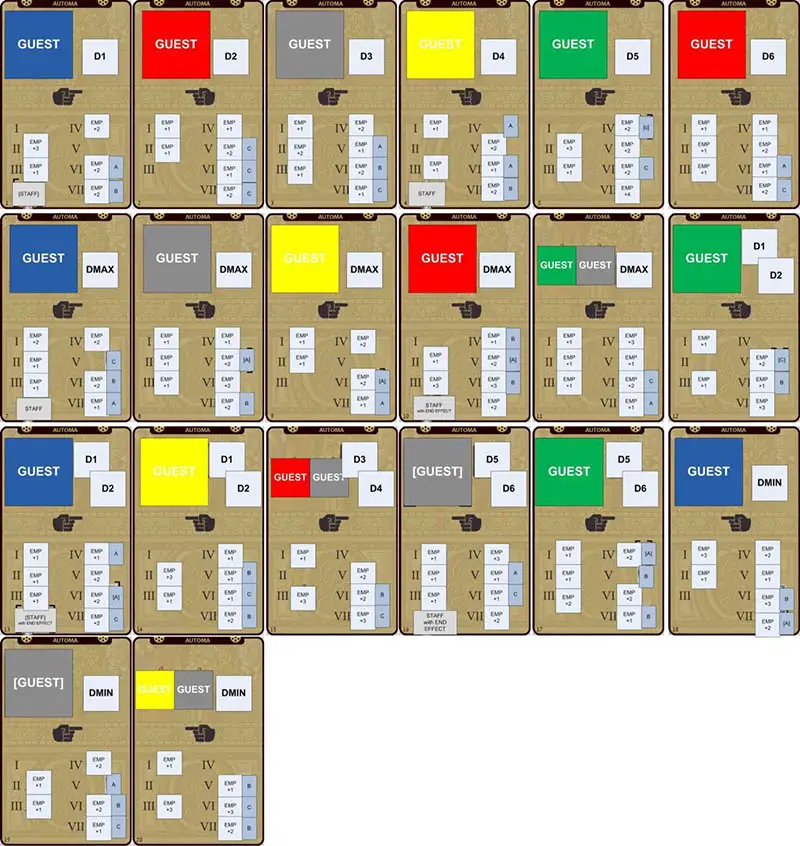 - If the Automa's hotel has no free spaces with the color of the guest which would be taken by the Automa, discard the current automa card and draw a new one.